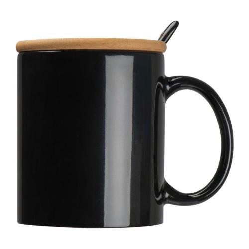 Cana din ceramica cu capac din bambus cu loc pentru lingurita si o capacitate de 300ml.