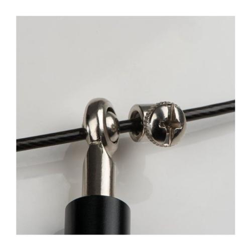 Coardă de sărit profesional, și bile metalice pentru o rotație rapidă. Lungimea corzii poate fi reglată cu ajutorul șuruburilor. Are mâner de calitate fabricat din oțel inoxidabil.