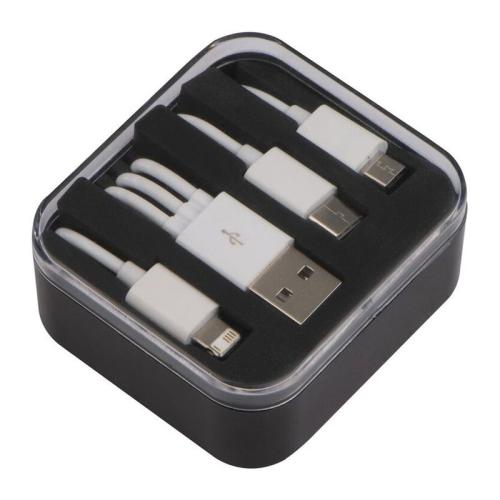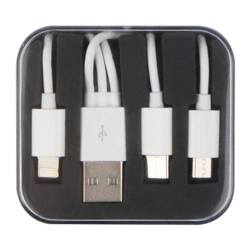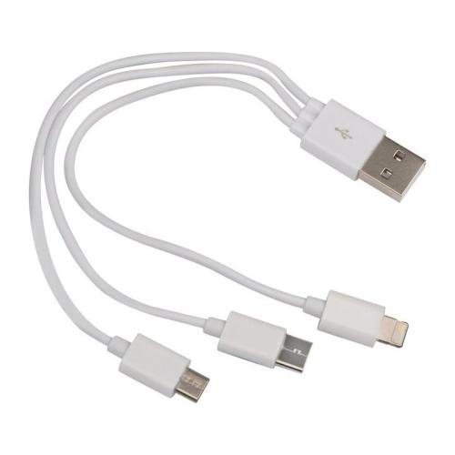 3in1 cablu încărcător cu USB, adaptor micro USB, şi cablu de încărcare pentru Android şi iOS, în cutie din plastic.