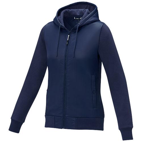 Center front exposed plastic zipper. Front pockets. Inside pocket. Flat knit elasticated rib cuffs and bottom hem. Branded hangerloop. Drawstring in hood. Brushed on the inside. Shaped seams and tapered waist for flattering fit. Easy grip zipper puller. Heat transfer main label for tagless comfort.