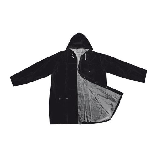 Pelerină de ploaie reversibilă din PVC cu patenţi şi glugă, disponibil în mărimea XL.