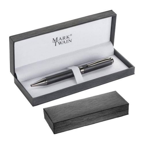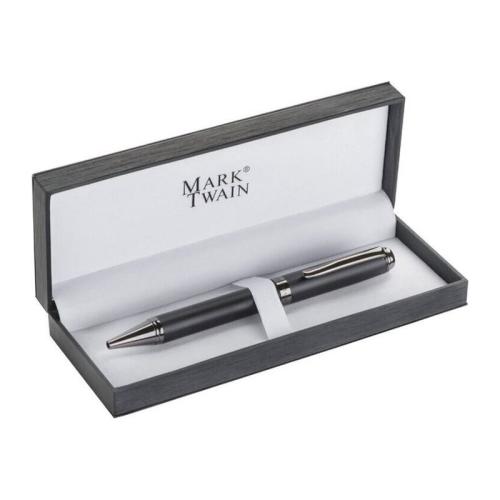 Pix Mark Twain din metal de culoare închisă cu detalii cromate într-o cutie elegantă.