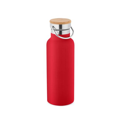 Double wall stainless steel vacuum bottle and capacity up to 570 mL. Includes screw on lid with bamboo and stainless steel carry handle. Supplied in a kraft paper gift box. ø70 x 220 mm | Box: 75 x 227 x 75 mm