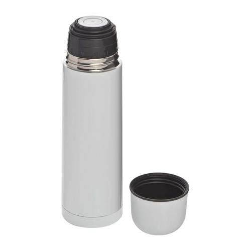 Sticlă cu perete dublu, capacitate de 500 ml, dop rapid şi cană din metal.